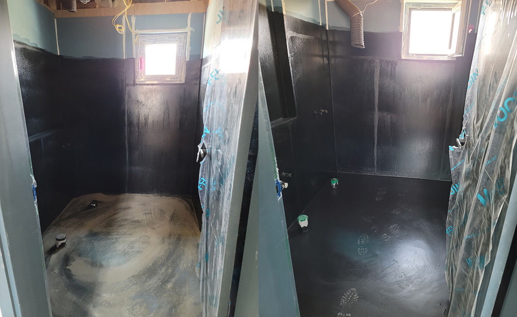 방수공사1층 액체방수, 2층욕실 및 테라스 열풍융착식시트방수작업 및 담수테스트