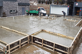 기초공사규준틀설치, 터파기, 전기/설비배관, 버림콘크리트타설, PE필름/단열재, 성토 등 기초설치 작업